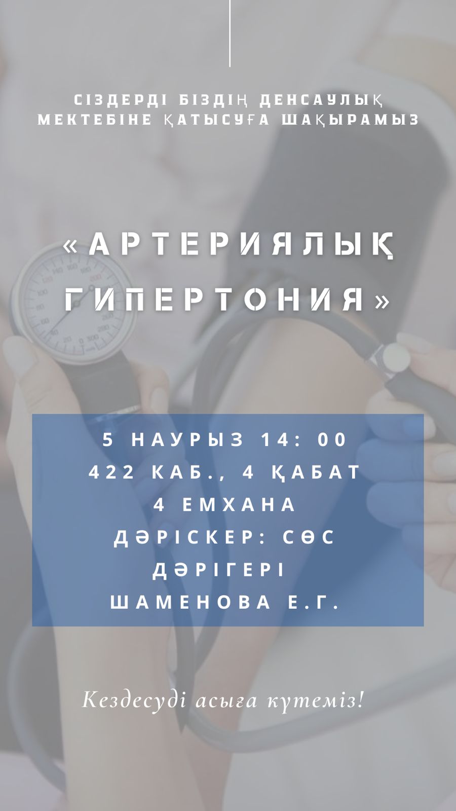 Емханада 8(7142)22-53-62 шұғыл психологиялық көмек телефоны жұмыс істейді.