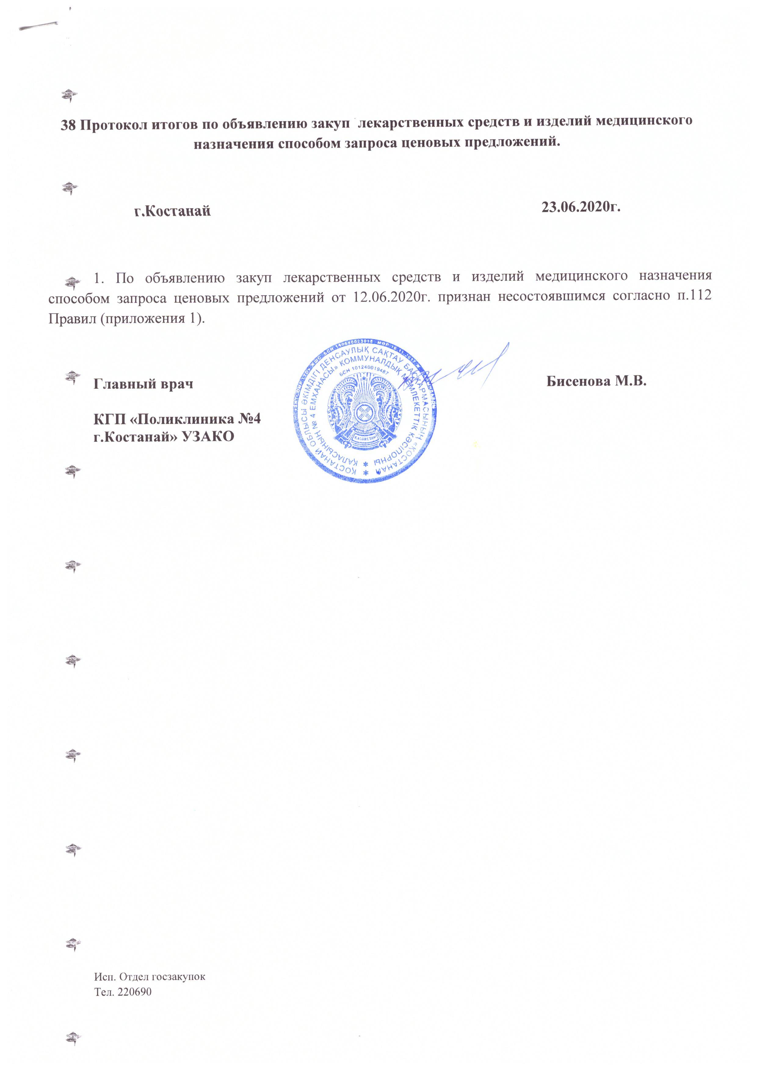 38 Протокол итогов закупа ЛС и ИМН от 23.06.2020г.